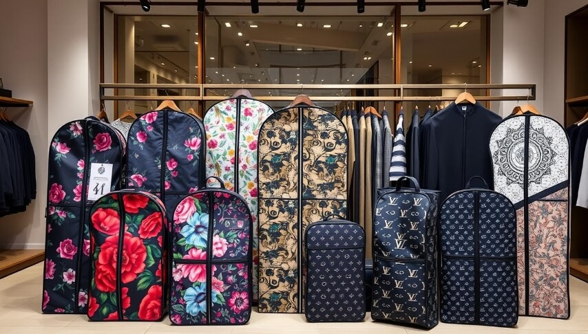 Custom garment bags safeguard designer pieces during transport and serve as eye-catching accessories that reflect the brand’s identity.