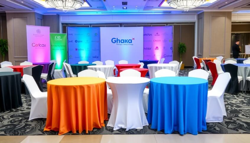 From pleated elegance to snug stretch fits, the style you choose says a lot about your brand. Fitted covers add a modern touch while loose-hanging ones give a classic vibe—perfect for formal dinners or outdoor networking events.
